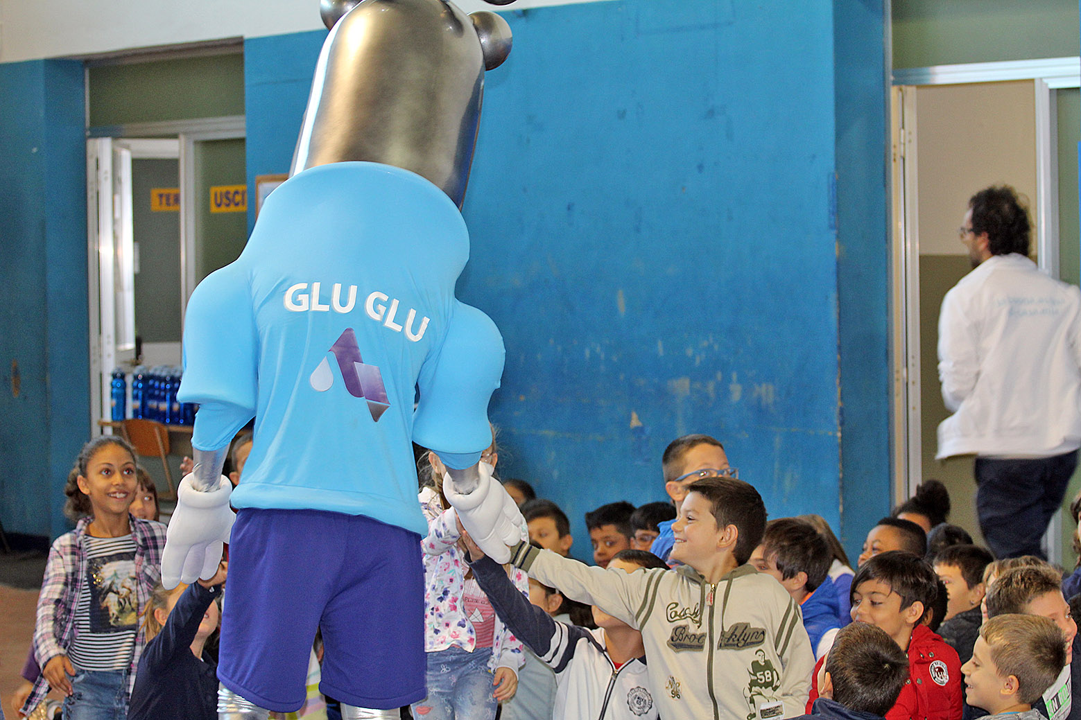 Dopo il taglio del nastro, Glu Glu ha omaggiato i bambini e gli insegnanti delle classi 3^B e 3^D con un dono speciale, la Borraccia Goccia Sport, un dono dall’alto valore simbolico e pratico: una valida alternativa ai contenitori di plastica, anche durante l’attività sportiva. Dissetandosi direttamente dalla fontanella Acqua Point e da qualsiasi rubinetto, i ragazzi adotteranno un comportamento salutare per la pratica sportiva, idratandosi con regolarità, e anche per l’ambiente: saranno da esempio e contribuiranno in prima persona nella riduzione della produzione di rifiuti di plastica.